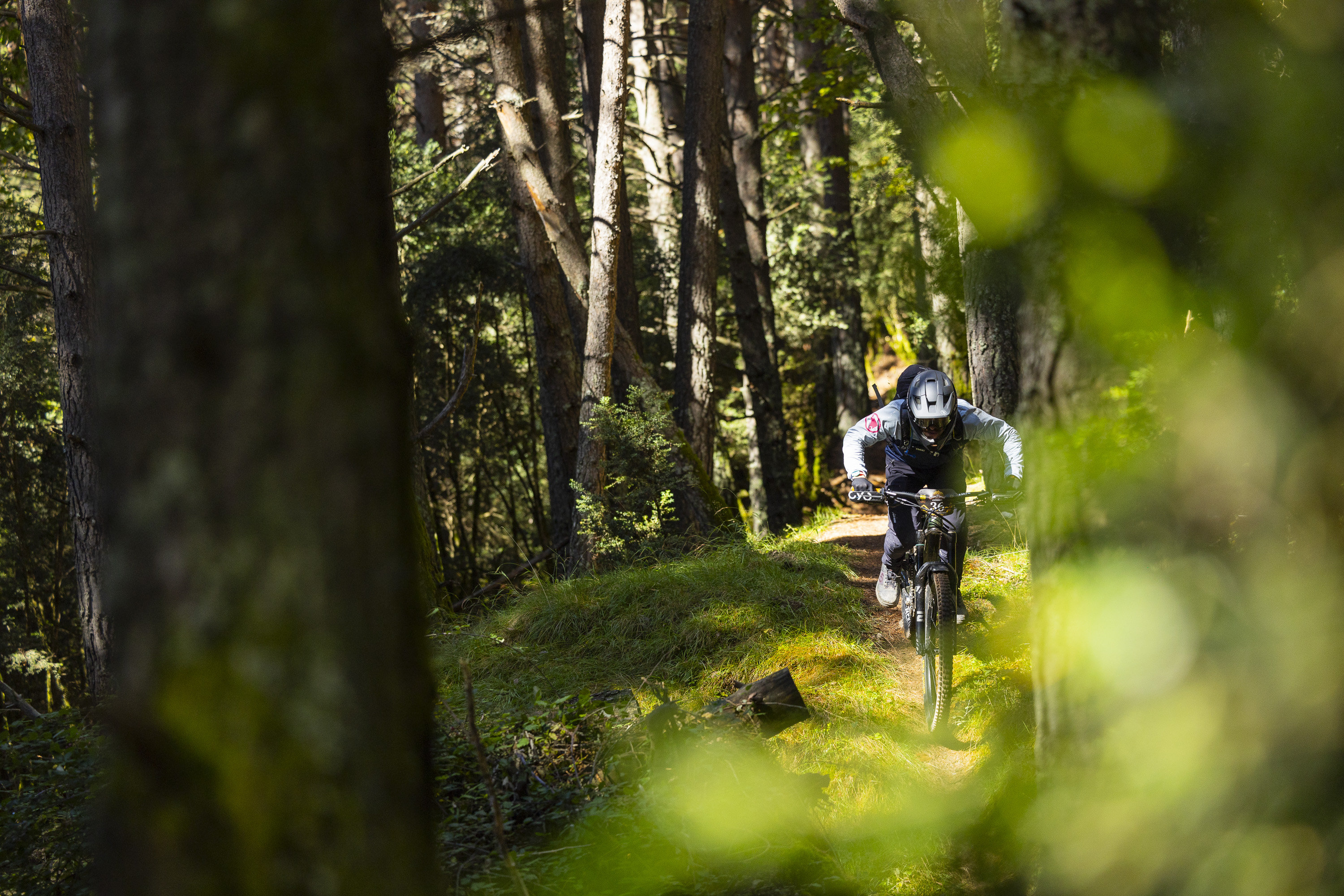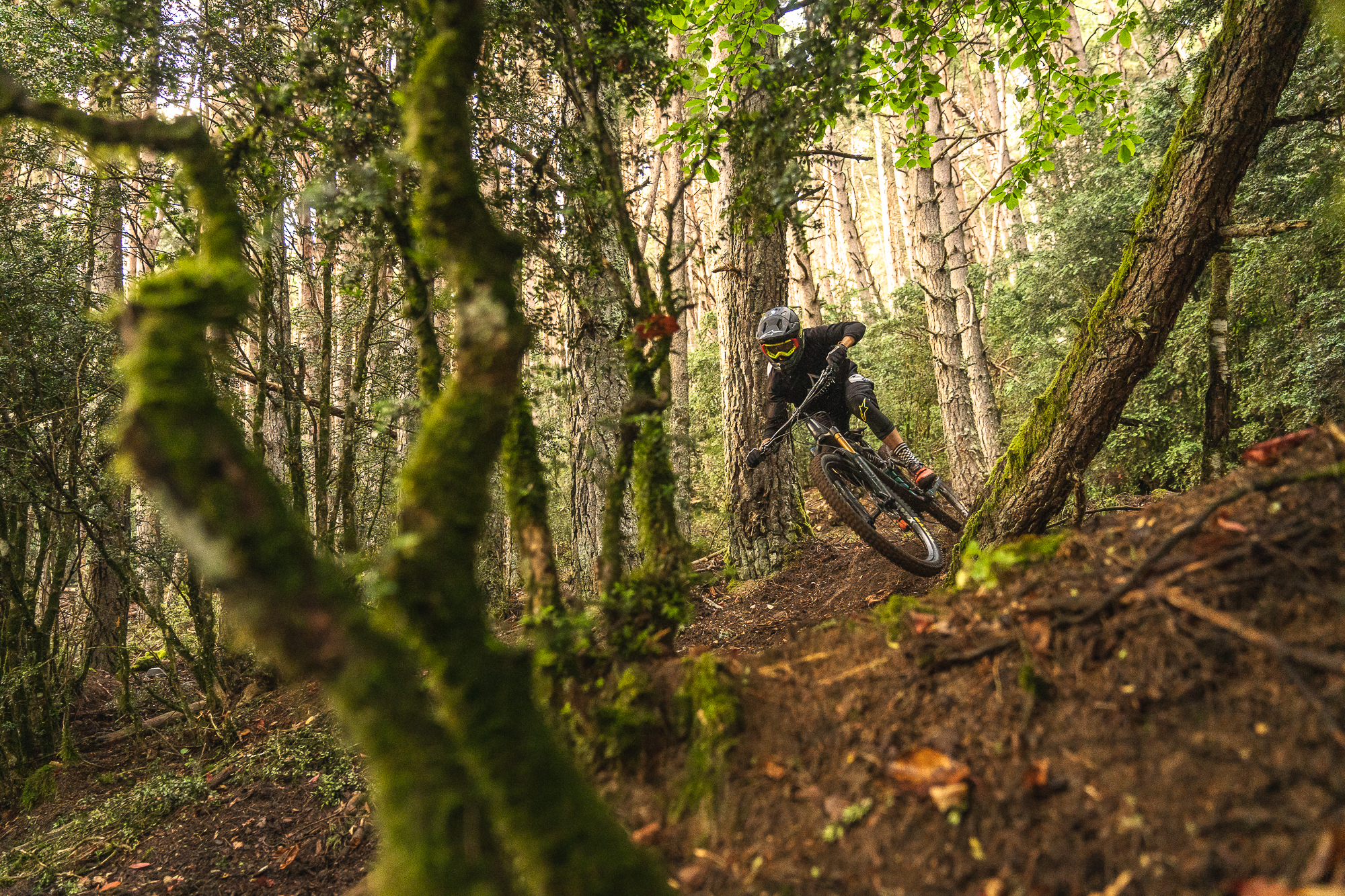 Drop below treeline and everything changes. The trails become grippier and more supportive, perhaps even slightly more forgiving. The dark, moisture-rich soil provides so much traction that berms often feel unnecessary, especially compared to the loose, unpredictable surface above.